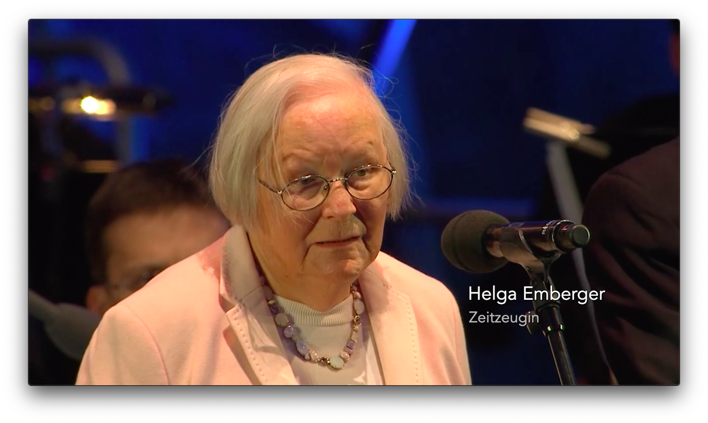 Den Höhepunkt der Veranstaltung bildete die Rede der Zeitzeugin Erika Kosnar. Die Wienerin stammt aus einer Arbeiterfamilie jüdischen Glaubens. Ab 1938 musste Kosnar Beschimpfungen, Schikanen und Gräuel erleiden. Dank der Zivilcourage ihrer Mutter überlebte sie den Nazi-Terror in Wien und widmet ihr Leben einem "Niemals wieder".