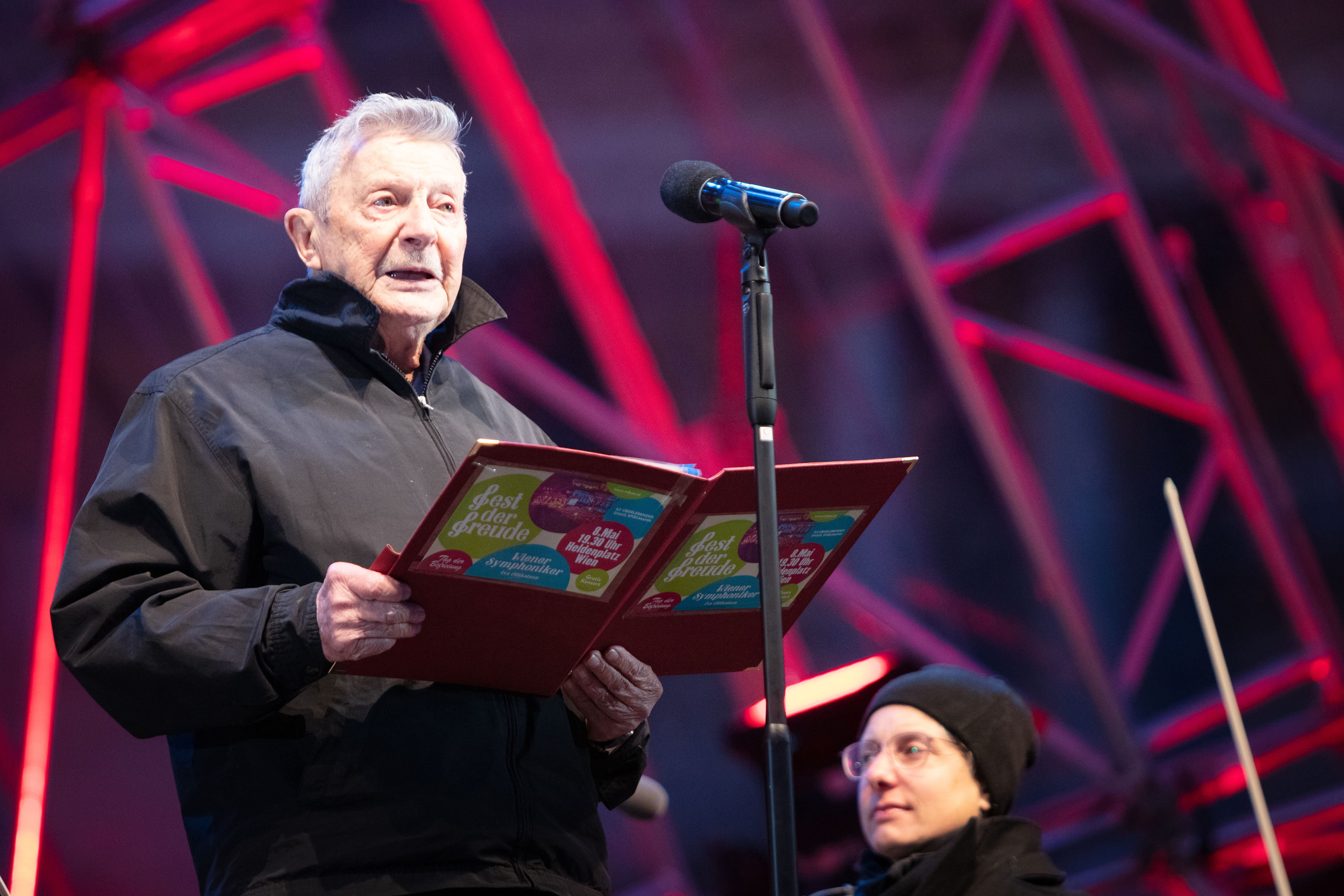 Anlässlich der historischen Bedeutung des Tags der Freude hielt Bundespräsident Dr. Alexander Van der Bellen eine Rede. Den Höhepunkt bildeten die mahnenden Worte des KZ-Überlebenden Shaul Spielmann, der sechs Konzentrationslager überlebte, u. a. das Konzentrations- und Vernichtungslager Auschwitz-Birkenau und Konzentrationslager im KZ-System Mauthausen.