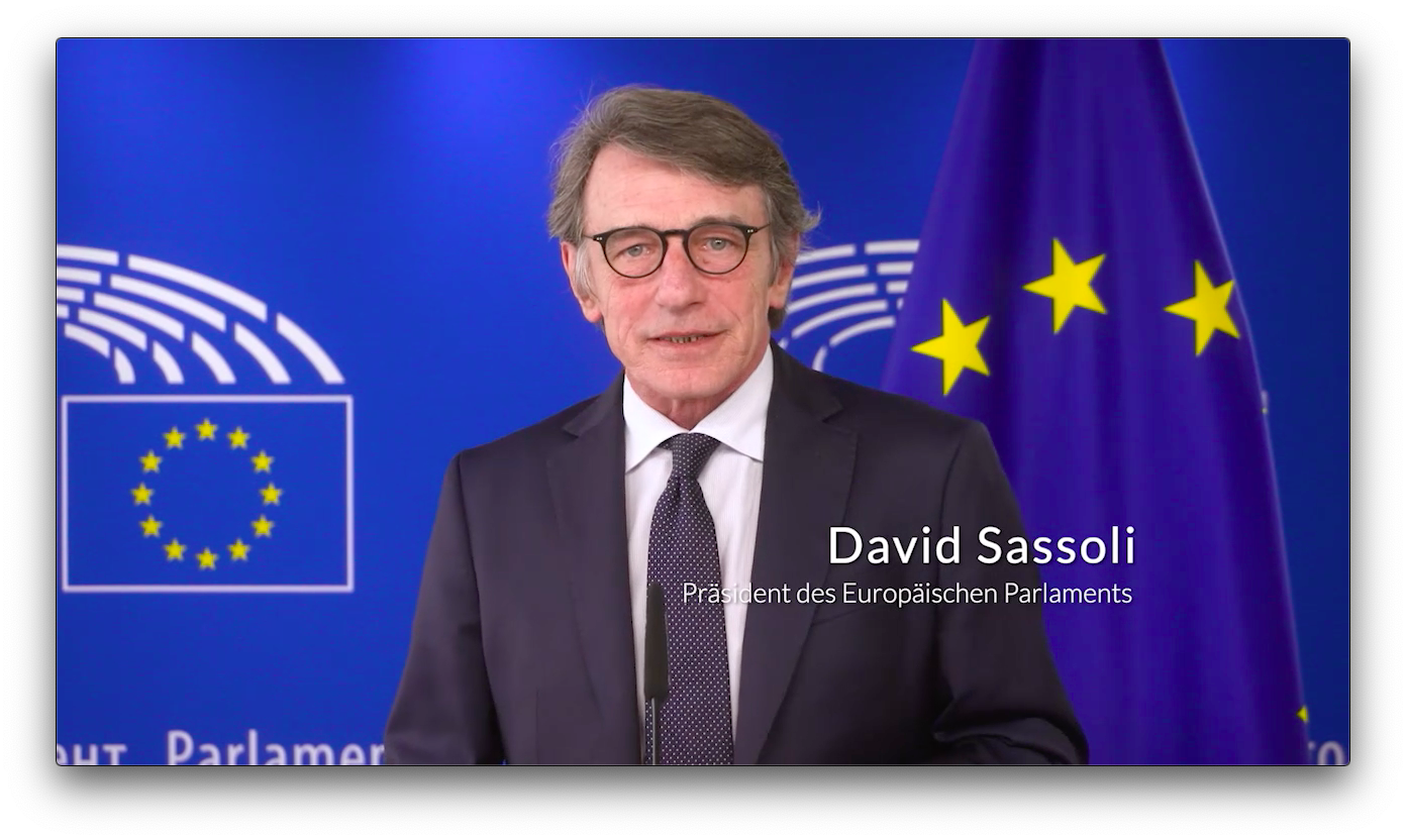 David Sassoli, Präsident des Europäischen Parlaments wendet sich in seiner Rede an die Jugend in Europa: "Die Worte des Mauthausen-Schwurs müssen eine Warnung für uns alle, vor allem aber für Euch, junge Europäerinnen und Europäer, sein: eine Möglichkeit, derer zu gedenken, aber auch das Opfer derer zu ehren, die in diesem Lager ihr Leben verloren haben, die für eine bessere Welt gekämpft haben, die für die Werte von Freiheit und Gerechtigkeit eingetreten sind. Ich wünsche Euch gutes Gelingen!"