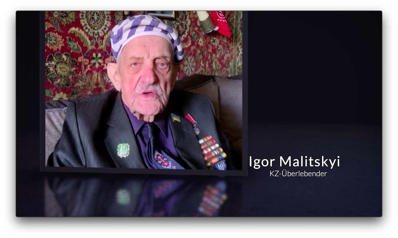 "Menschen dieser Welt! Ich bin ein ehemaliger Insasse von 4 Konzentrationslagern: Theresienstadt, Auschwitz, Mauthausen, Linz-3. Ich appelliere an Sie. Nur unser gemeinsames Tun kann verhindern, was in der Welt gerade passiert. Freundschaft und gegenseitige Hilfe haben uns geholfen, zu überleben. Man gab uns eine Steckrübe, und ich konnte sie nicht essen, da mir Dr. Mengele zuvor die Zähne gezogen hatte. Dann nahm Fedir Gromov, einer meiner Freunde, meine Rübe, kaute sie und fütterte mich damit. Für Menschen, die niemals Hunger gelitten haben, ist dies unvorstellbar. Menschen, seid wachsam und schützt die Welt!"