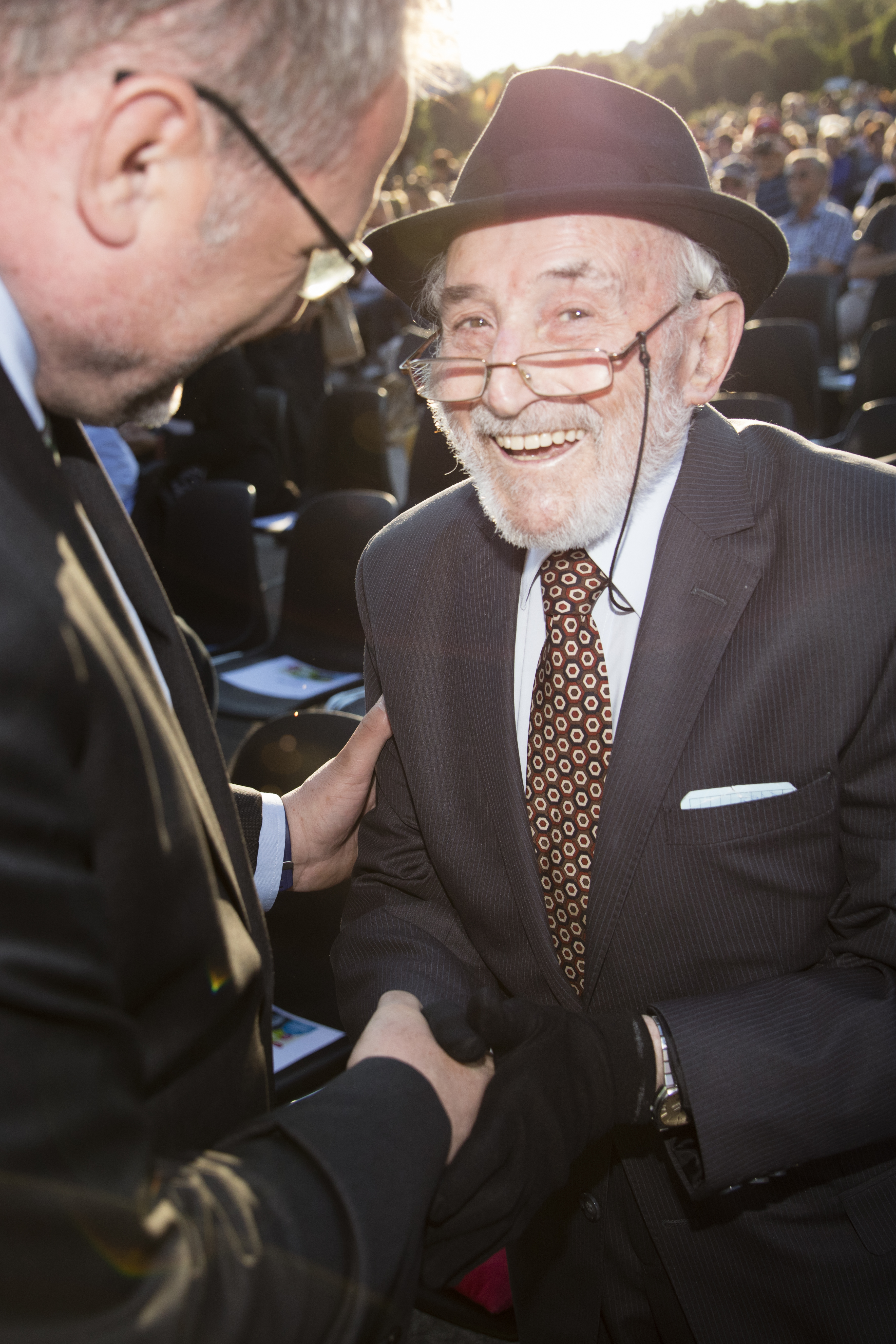 Aba Lewit erzählte seine Geschichte das erste Mal öffentlich 2014 beim Fest der Freude. In seiner berührenden Rede appellierte für mehr Wachsamkeit gegen Ewiggestrige und für die Wertschätzung unserer Freiheiten und Demokratie. Stellvertretend für alle Überlebenden klagte er gegen die Zeitschrift Aula, die KZ-Überlebende als "Landplage" diffamierte.