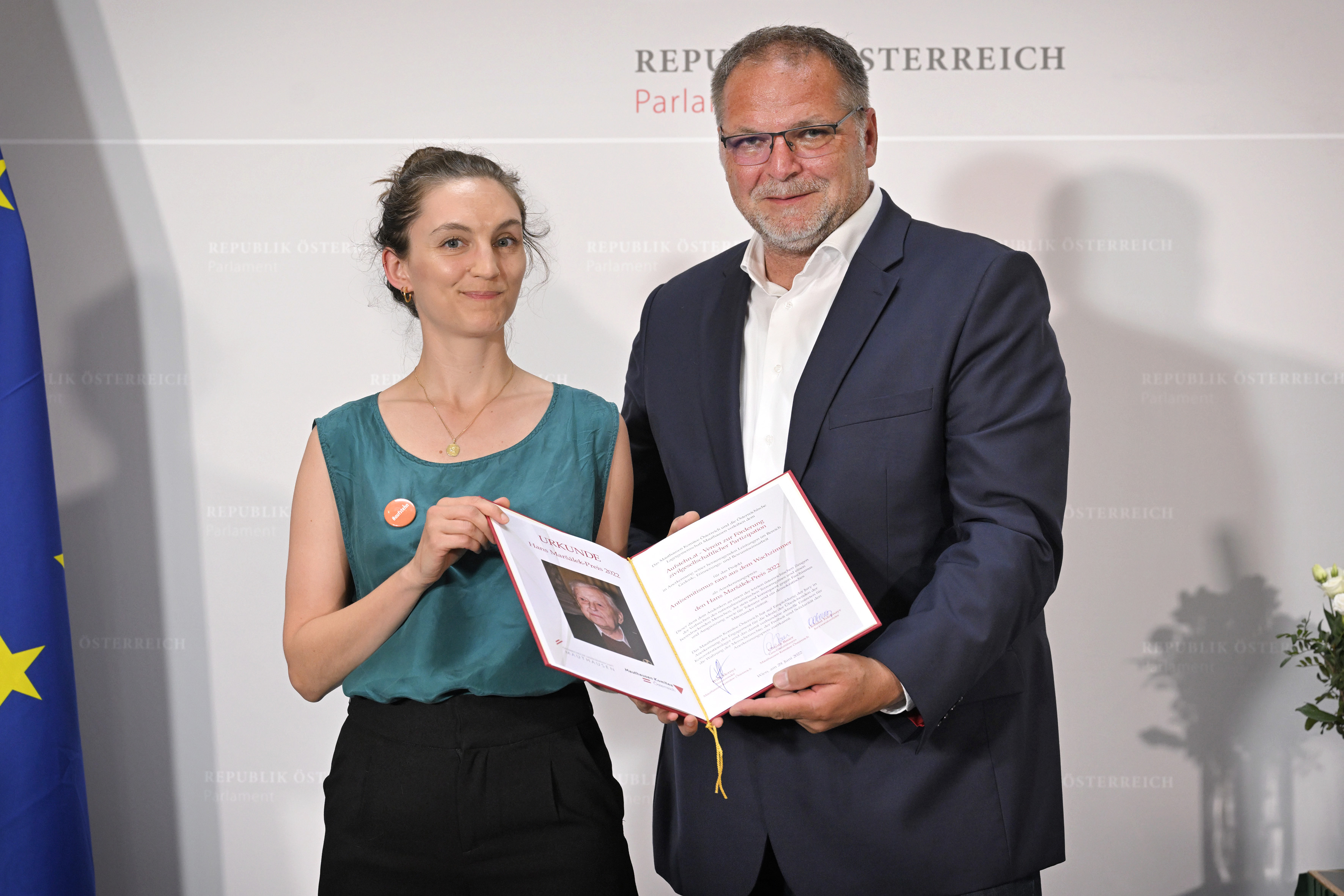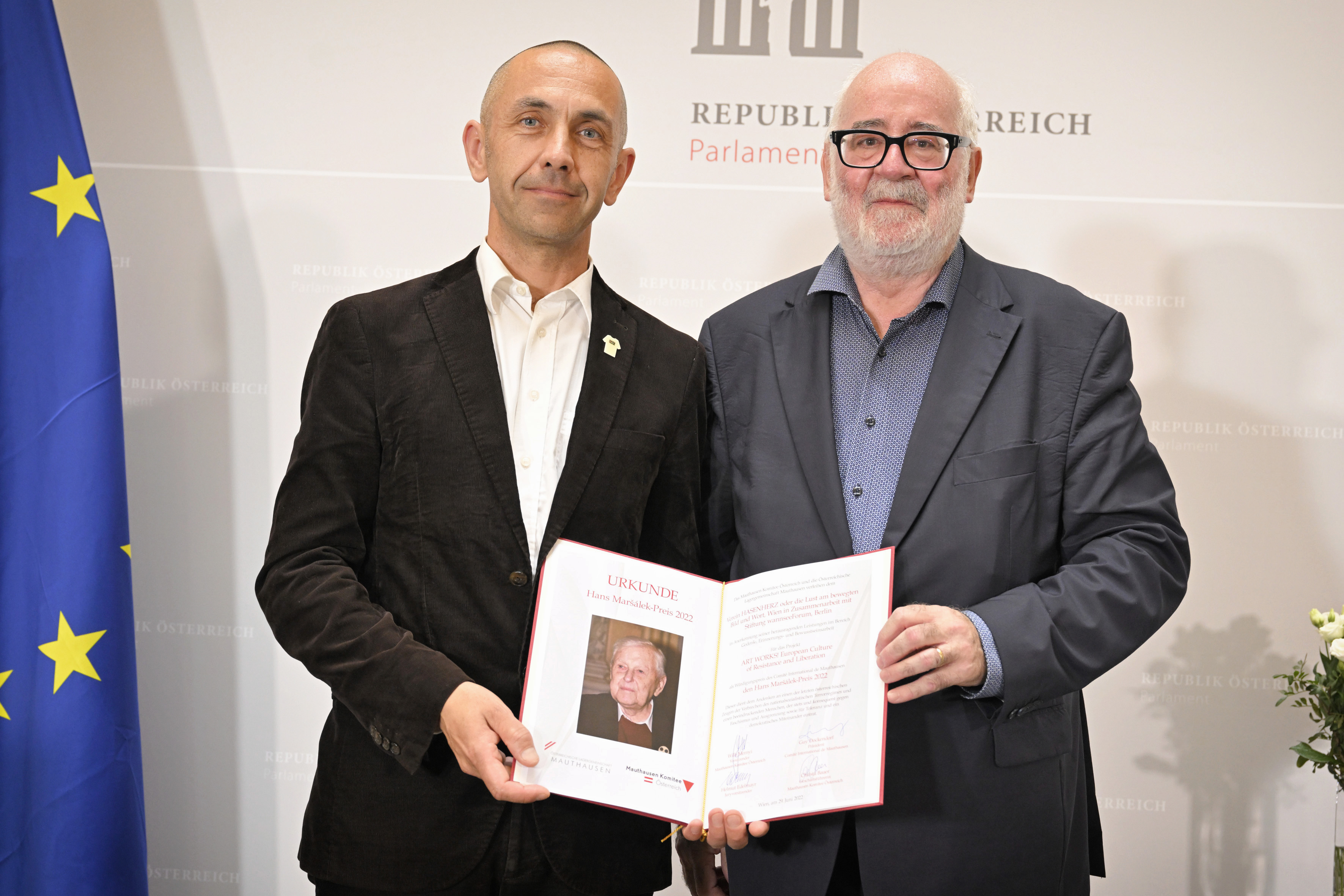 Gestern Abend zeichnete das MKÖ die Siegerprojekte des Hans Maršálek-Preises im Palais Epstein aus. Zum dritten Mal stifteten das Mauthausen Komitee Österreich (MKÖ) und die Österreichische Lagergemeinschaft Mauthausen (ÖLM) den Hans Maršálek-Preis für herausragende Leistungen im Bereich der Gedenk-, Erinnerungs- und Bewusstseinsarbeit. Mit den Auszeichnungen wird an den Zeitzeugen Hans Maršálek erinnert, der sein Leben nach dem Zweiten Weltkrieg der Erforschung und Dokumentation der Geschichte des Konzentrationslagers Mauthausen und seiner Außenlager gewidmet hat. Geehrt werden Projekte, die das Wirken Maršálek fortführen. Dazu zählen sowohl wissenschaftliche Arbeiten als auch Initiativen zur Jugend- und Erwachsenenbildung sowie ausgeführte Projekte zur lokalen Verankerung des Themenkreises Nationalsozialismus, Konzentrationslager, (Anti-)Rassismus und Stärkung der Demokratie.