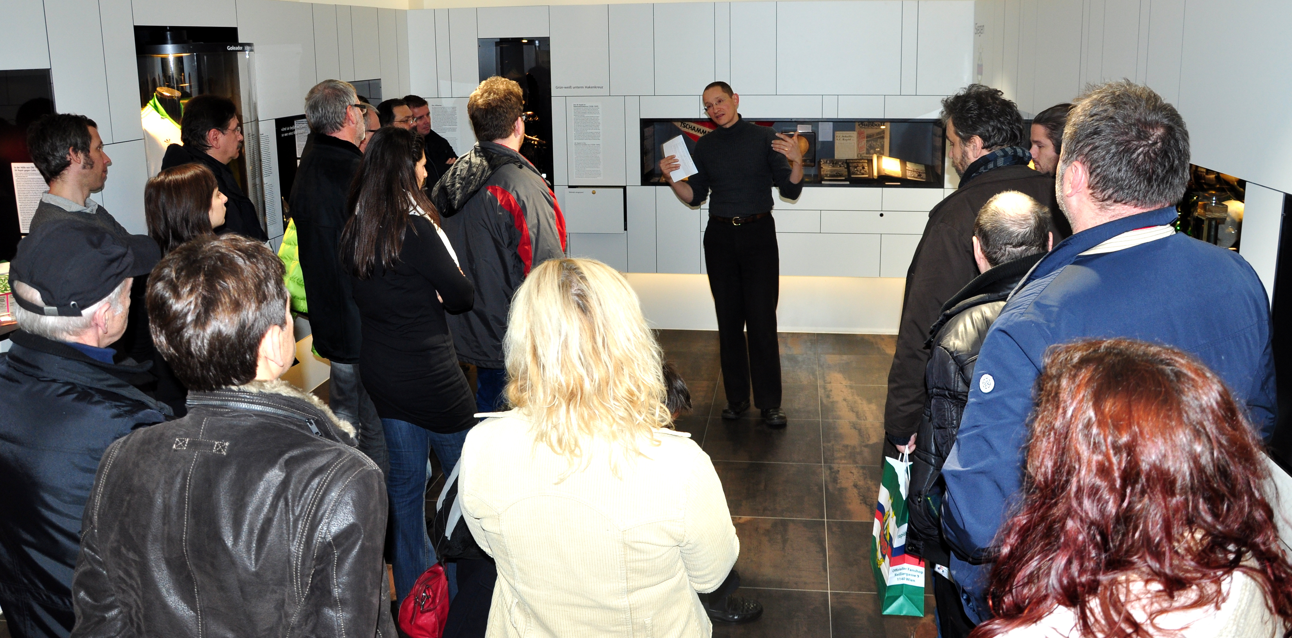 In unserem Spezialrundgang wird schwerpunktmäßig die Zeit des Nationalsozialismus behandelt. Welche Rolle nahm Rapid, seine Funktionäre und Spieler in der NS-Zeit ein? Der Rundgang gibt einen Überblick über die sportliche und politische Geschichte Rapids in den Jahren 1938 bis 1945. Neben den Erfolgen des Vereins zu dieser Zeit, den Tätern, Opfern, Widerständlern und Mitläufern in den Reihen der Rapidler, geht der Kurator im Rahmen des Rundgangs auch auf die Rolle anderer Fußballvereine in dieser Zeit ein. Ausgehend von der Vereinsgeschichte zur Zeit des Nationalsozialismus wird auch ein Bogen in die Gegenwart gespannt und die Auseinandersetzung des Vereins mit Rechtsextremismus besprochen.
