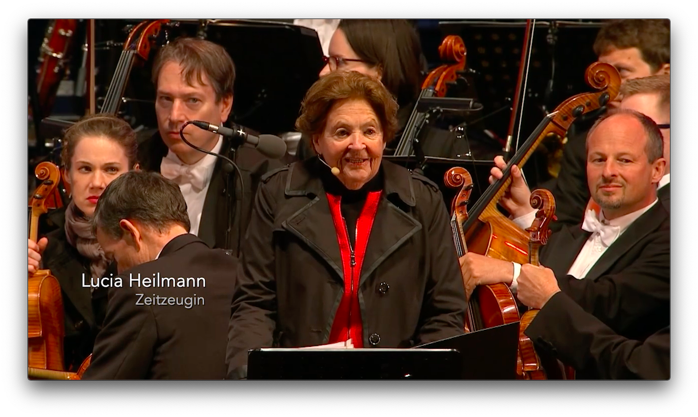 Den Höhepunkt der Veranstaltung bildete die Rede der Zeitzeugin Erika Kosnar. Die Wienerin stammt aus einer Arbeiterfamilie jüdischen Glaubens. Ab 1938 musste Kosnar Beschimpfungen, Schikanen und Gräuel erleiden. Dank der Zivilcourage ihrer Mutter überlebte sie den Nazi-Terror in Wien und widmet ihr Leben einem "Niemals wieder".